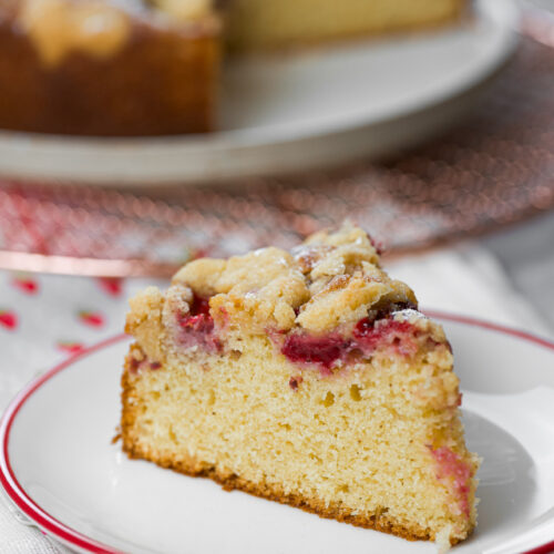 Simples e delicioso, esse bolo crumble de baunilha e morango é amanteigado e macio, com o contraste crocante do crumble por cima! Essa receita é tão fácil de fazer, que já virou minha favorita dos últimos tempos!